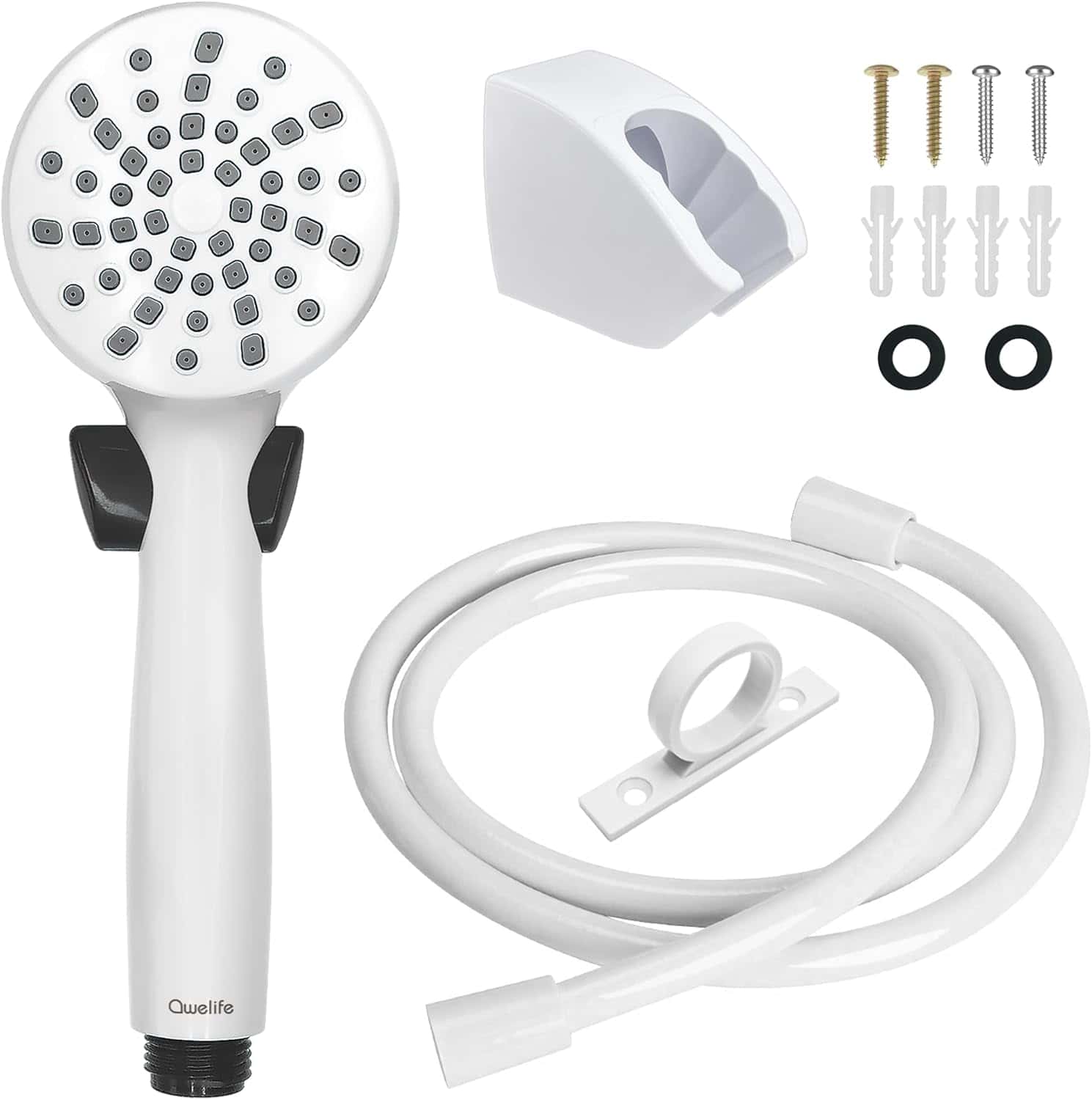 The included 59” double-connector hose is kink-free, flexible, and engineered for tight RV shower spaces. A custom hose guide ring ensures smooth movement and compatibility with most camper shower setups. The kit also comes with a sturdy 3-position shower head holder that adjusts to your preferred angle and includes all necessary screws and plugs for quick installation.