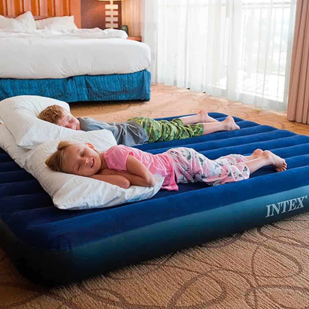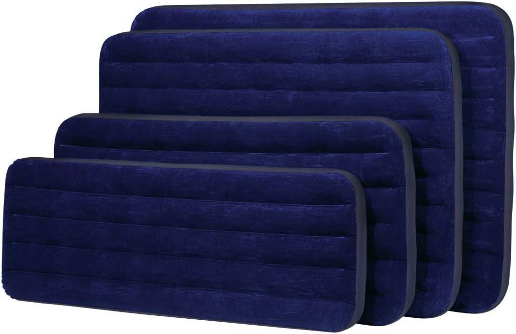 With plush flocking on the top, the queen-sized Classic Downy airbed from Intex provides a softer sleeping surface that also helps keep bedding from slipping off the mattress. Crafted with durable heavy gauge vinyl, the cozy flocked top cleans easily and is waterproofed for camping use. The quality-tested bed is constructed with a 20.8-gauge waterproof flocked top, along with 14-gauge vinyl beams, and 15-gauge sides and bottom. With a 2-in-1 valve with an extra wide opening, inflation or deflation is quick and easy.