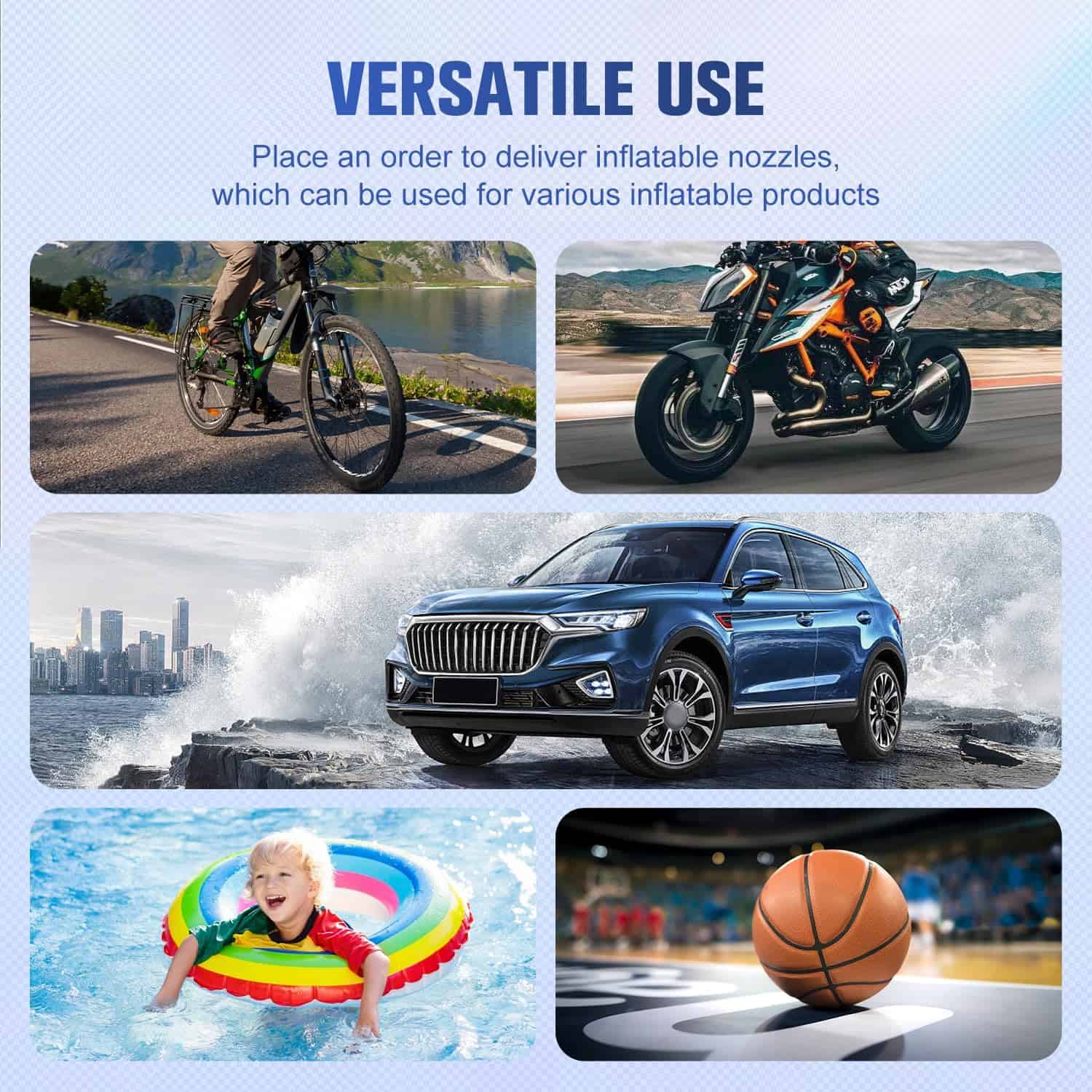 | Included Components | 5M extension hose, 1M battery clamp, 3 adapters, motorcycles, bicycles, balls, pool toys, |