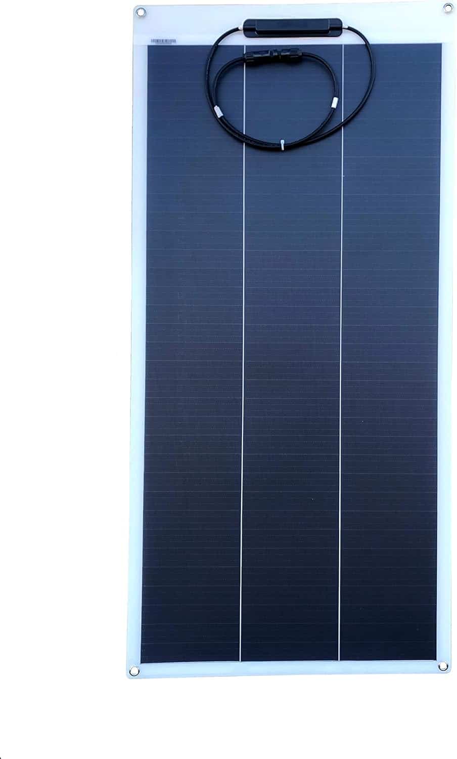 WindyNation Semi-Flexible Solar Panel is designed for versatility, durability, and high performance, making it an excellent choice for mobile and outdoor power applications. Capable of flexing up to 30 degrees, this panel easily mounts flush to curved surfaces such as RVs, sailboats, campers, and tents, while its ultra-thin 0.1-inch profile ensures a sleek, low-profile fit. Weighing just 4 pounds, it is extremely lightweight and efficient, utilizing high-performance monocrystalline solar cells for optimal energy conversion. Built to withstand the elements, both the solar panel and junction box are fully water-resistant, ensuring reliable operation in all weather conditions. For easy installation, stainless steel grommet mounting holes are located in each corner, with options to mount using adhesive or Velcro. A blocking diode in the junction box prevents battery discharge at night, maintaining consistent efficiency. The panel comes ready to install, equipped with 12 AWG solar cable leads and pre-attached PV connectors for a simple, hassle-free setup.